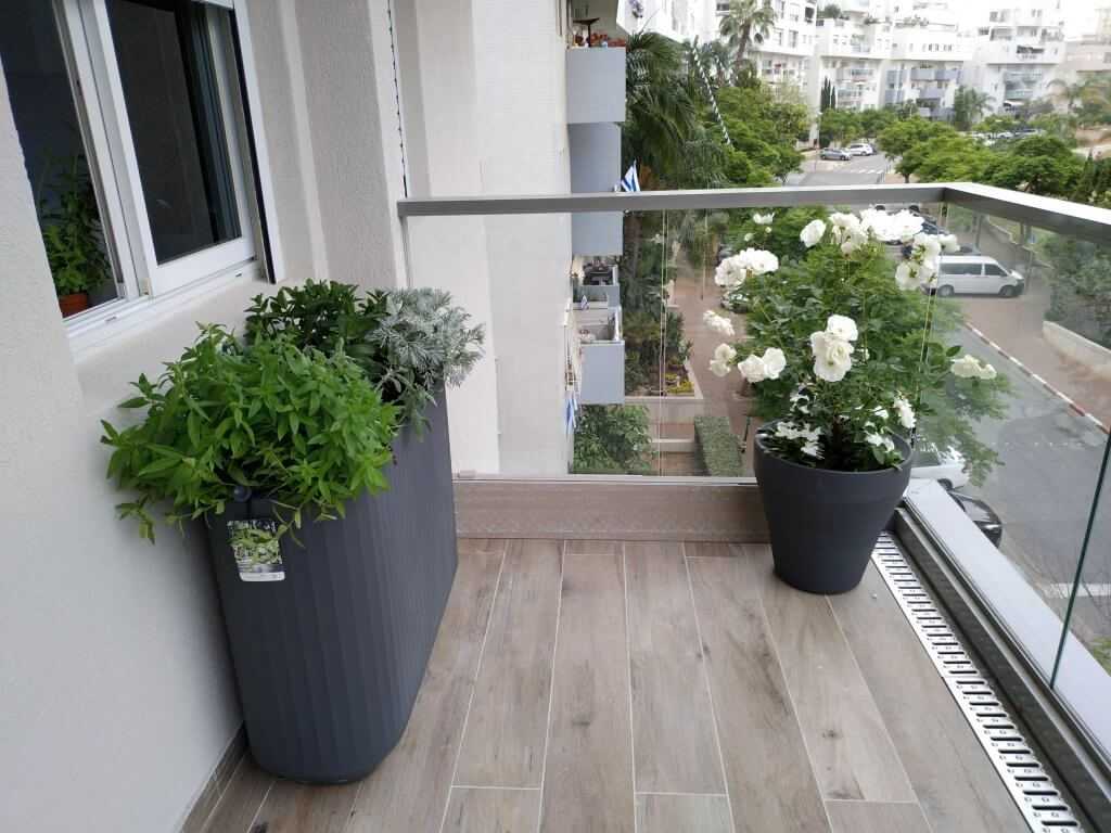 ושוב בולט היתרון של מיכל שתילה צר… אין "גניבת" שטח מיותרת מרצפת המרפסת. צמחי תבלין גבוהים כמו רוזמרין, שיבא, למון גראס, או פורחים עונתיים גבוהים כמו וינקות בקיץ או לוע ארי ומנטור בחורף, יעשו אתכם מאושרים ו מתוך הבית 🙂