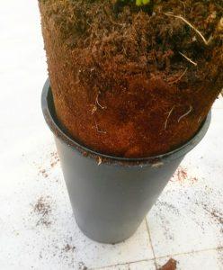 הסרה – הסירו את עציץ הפלסטיק וחלצו את בית השורש מתוכו, מציע להשכיב את העץ על הרצפה, מיד תבינו מדוע.