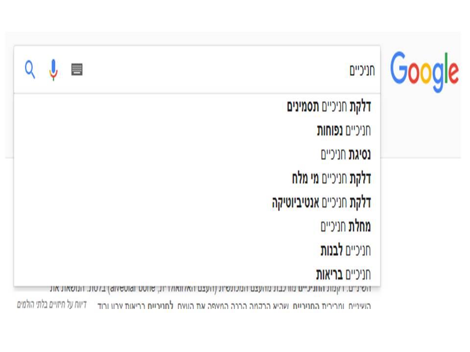 איך בונים דפי תוכן בתחום החניכיים? קלללל… נכנסים לתיבת החיפוש ומקישים את המילה חניכיים – כל משפט הוא הצורה בה אנשים חיפשו משהו שקשור לחניכיים והמשפט הזה יהפוך לדף תוכן שזו כותרתו. קפיש? כלומר, מרגע זה ואילך כל הכתיבה מבוססת על מה או איך שאנשים מחפשים, והכותרת מכילה את מילת השורש שהיא הידע, הנסיון והתשוקה שלכם לנישה. זהו! טוב לא ממש… כבר עובר לעניין הבא.