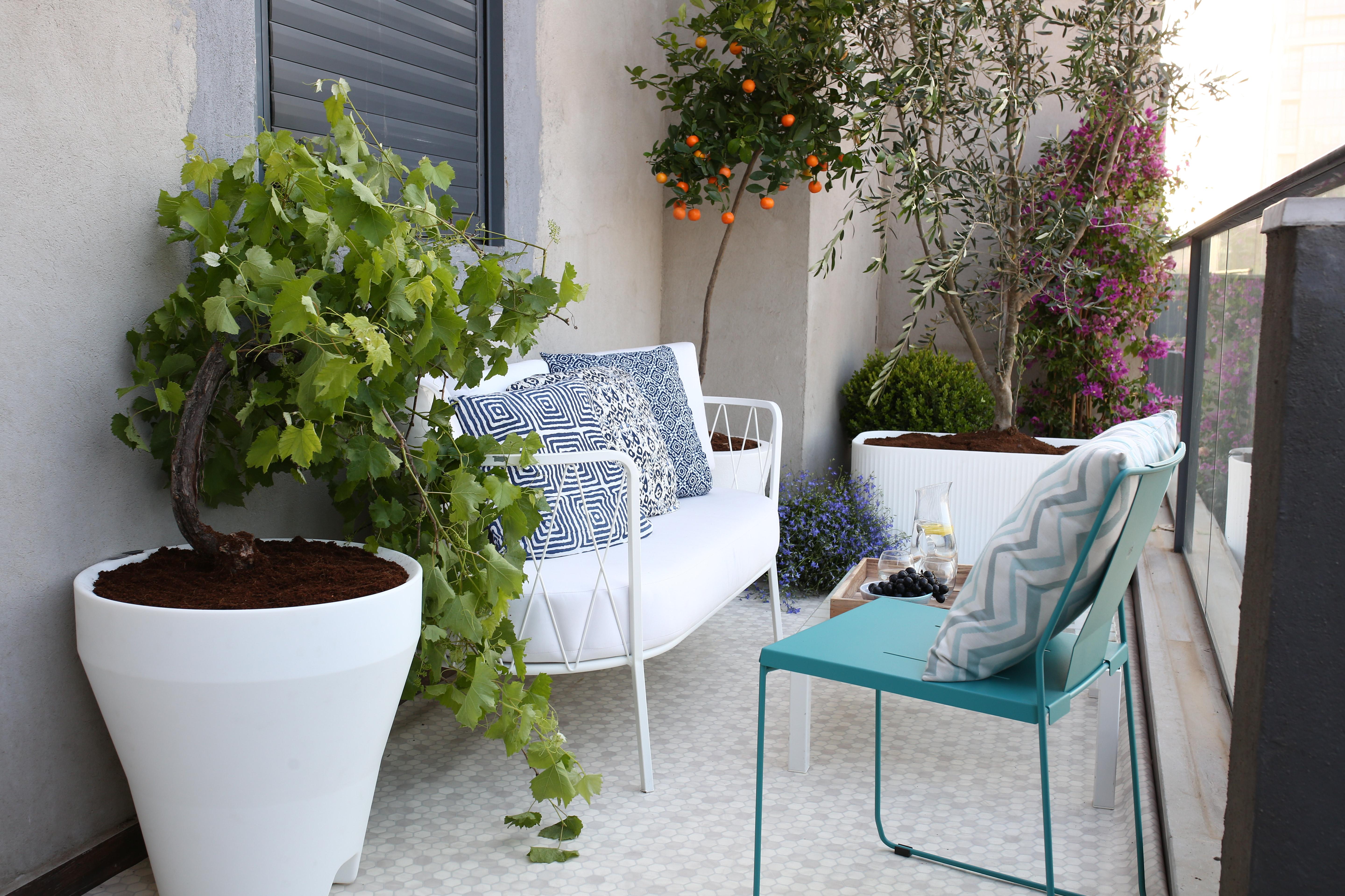 3 כדים, 3 צמחים גדולים, כמעט אפס דרישות תחזוקה ויש לכם גינה במרפסת שגודלה 16 מר' 🙂 חלום? כן. קל להגשים? ברור.