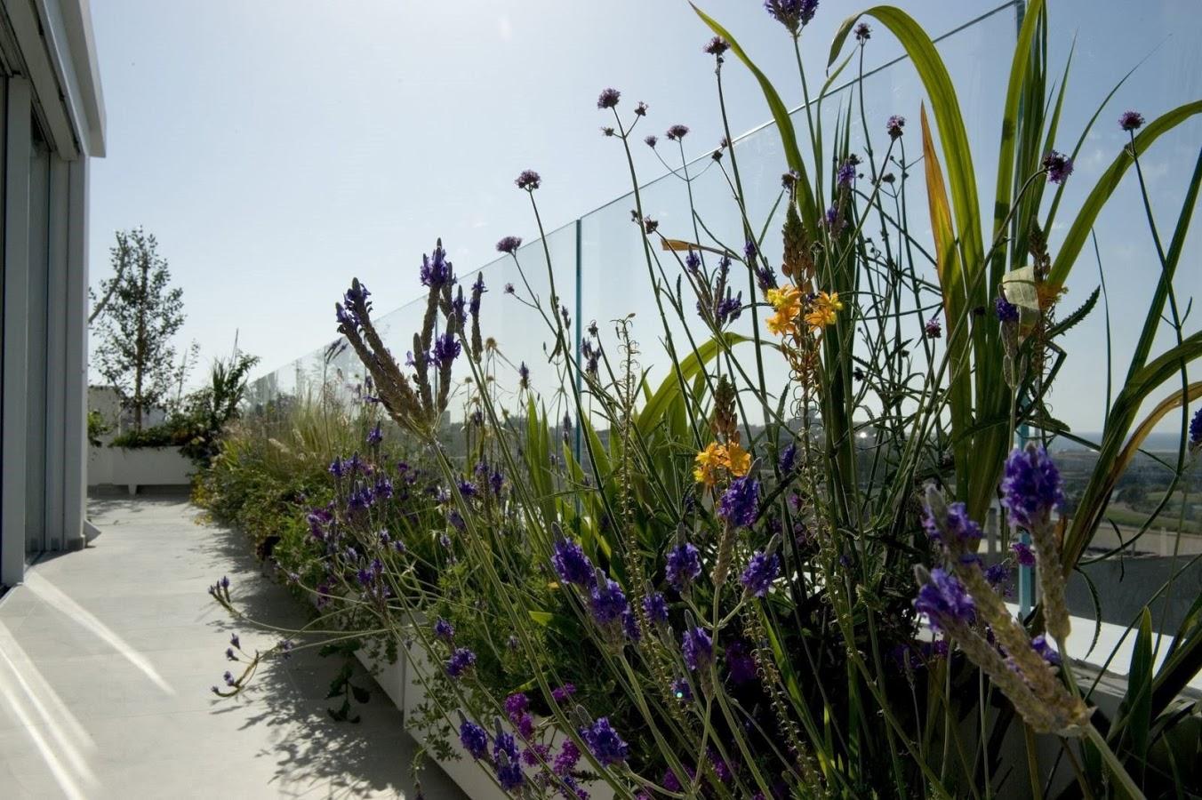 מעט השראה – מרפסות מהעולם תל אביב – בתמונה הבאה נראית מרפסת שבעליה בחרו לעשות שימוש באדניות פשוטות בעלות מראה שמרני אך עם המון דגש על סוג ואופי הצמחייה, כי זה מה